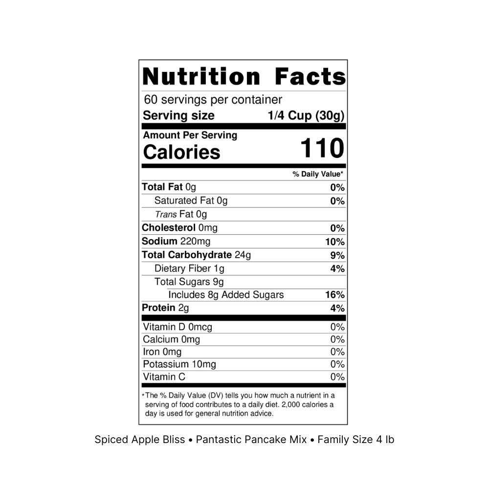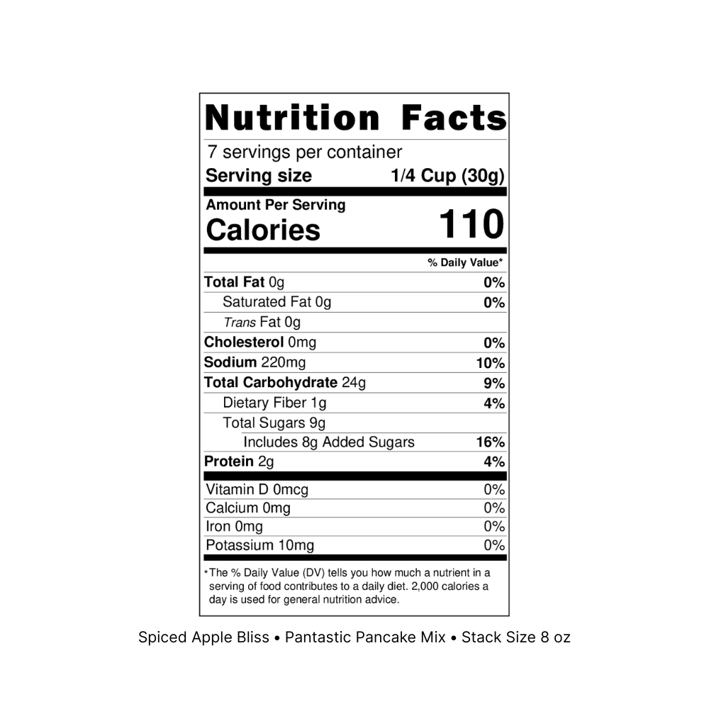 Indulge in the cozy flavors of Spiced Apple Bliss! With freeze-dried apples and a touch of cinnamon, these pancakes deliver a warm, comforting taste of autumn all year long. Just add water for a delicious, naturally sweet breakfast experience.